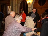 Prodej Božích milostí a koblížků v kostele