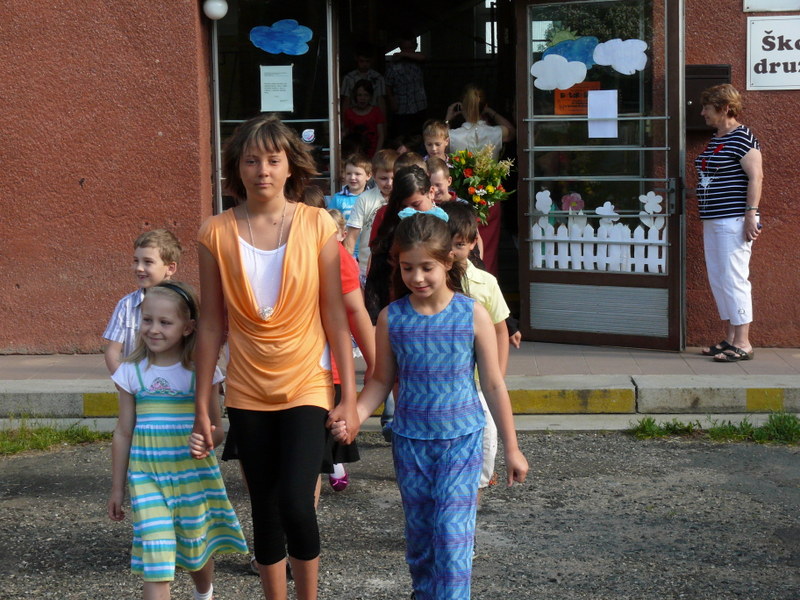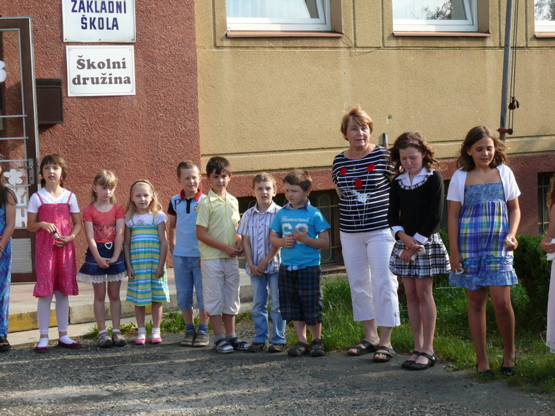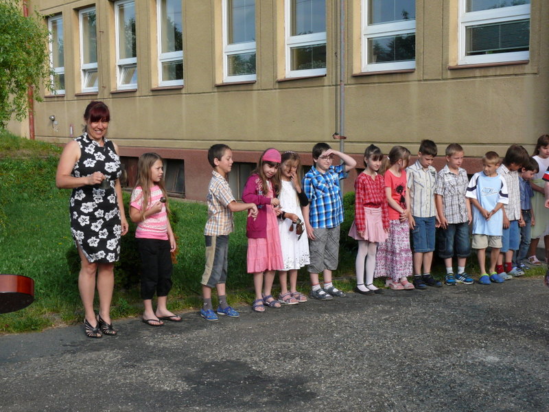 V pátek 21.6.2013 se před školou rozloučili mladší spolužáci, učitelé a starosta obce se šesti žáky pátého ročníku ZŠ.
